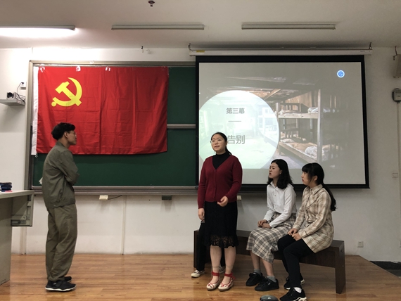 辅导员史欣平和赤心工作坊干事们担任评委,到场的还有第六期全体学员。五个小组的同学用红色话剧的形式,在追忆革命志士英勇事迹的同时,为我们带来了一场场精彩绝伦的演出,赢得了台下老师、同学们的热烈掌声。