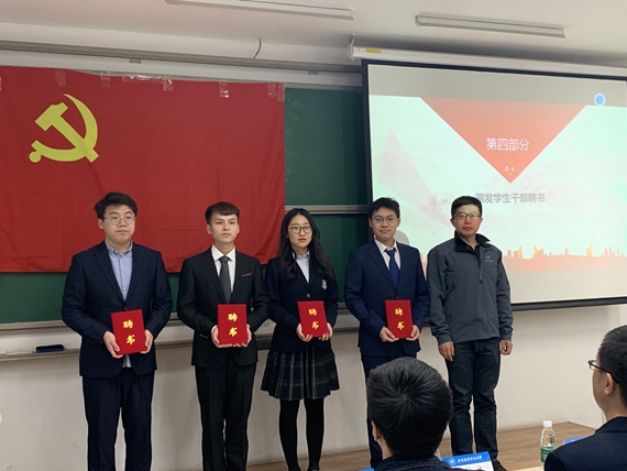 仪式伊始,全体起立奏唱国际歌;总干事葛睿文同志介绍了赤心党建工作坊的基本情况;之后,李俊良院长致辞,表达了对新一期入党积极分子的衷心祝贺和殷切期望;紧接着陈新书记为第六期赤心党建工作坊学生干部颁发聘书并表示祝贺。