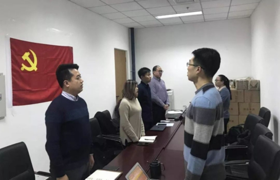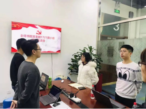 党支部在沙河主楼409开展了党支部大会。党支部书记孙泽斌同志首先带领第二批入党的党员同志进行宣誓,各位党员高举右手,面对鲜红的党旗铿锵有力地发出了自己的铮铮誓言。