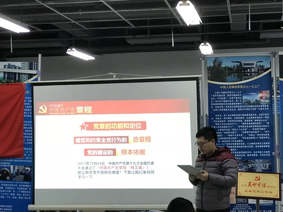 随后,1604党支部学生党员王维斌和凌瑞彤做主题为“学习党章,争做合格党员”的理论学习汇报。王维斌同志为大家解读了十九大党章,并对十九大党章修改的主要内容以及修改《中国共产党章程》的重大意义几方面做出了自己的理解与诠释;凌瑞彤同志结合自身经历和感悟,从如何成为一名合格的学生党员的角度为我们做了具体阐述。