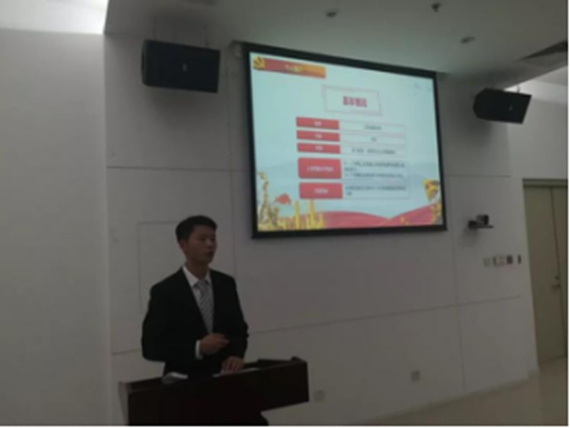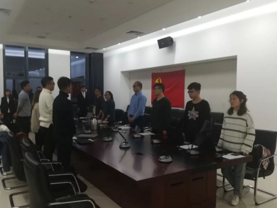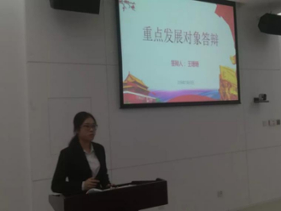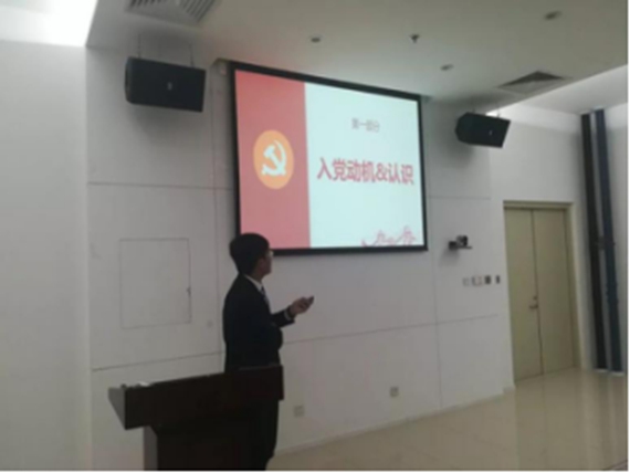奏唱《国际歌》完毕后,本次答辩大会正式开始。党支部书记孙泽斌同志首先介绍了入党答辩的流程和要求,积极分子确定为发展对象答辩是我校加强发展党员流程的创新举措,旨在从多方面考察入党积极分子的思想动态,更好的把控大学生党员的质量。