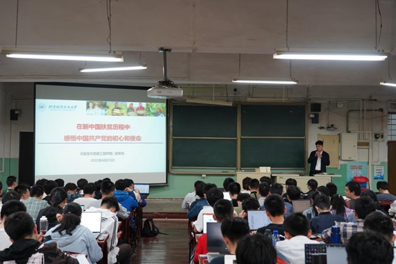 与马克思主义学院联合开设的“四史导学”专题思政课第五讲在教学楼(一)201教室开讲。学校扶贫团队成员、可靠性与系统工程学院党委副书记梁帮龙作题为“在新中国扶贫历程中感悟中国共产党的初心和使命”的主题讲授,书院220名学生现场学习,其余学生线上观看,共同学习了本次课程。
