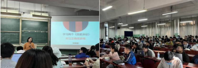 刘娜娜老师从两个历史决议是什么、正确的党史观是什么和为什么要反对历史虚无主义三个角度出发,将理论与实践结合、历史与现实结合,旁征博引,层次清晰地进行讲解。刘娜娜老师通过阐述总书记的系列讲话,强调了树立正确党史观的重要性,让同学们认识并明确了共产党人正确的党史观,坚持历史唯物主义,摒弃历史无用主义,破除历史虚无主义,坚持用唯物史观来认识历史的根本立场。