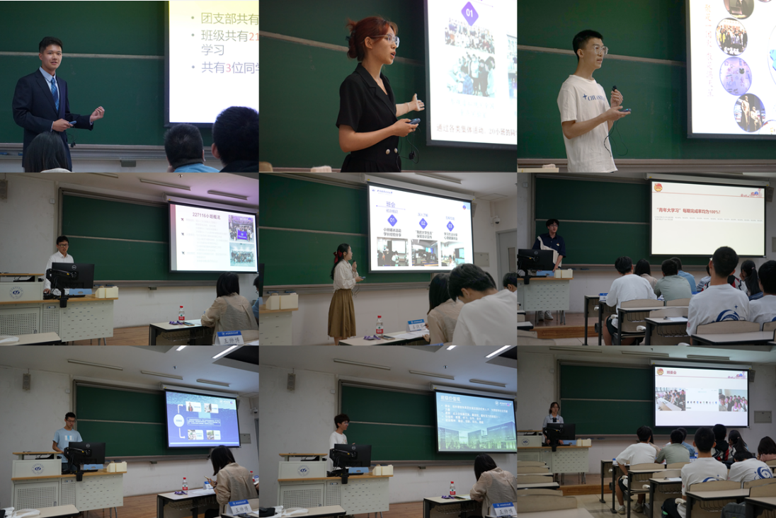 各支部班级答辩内容以3分钟团支部建设与2分钟班级建设组成,传源书院18个小班逐一介绍了过去一年中班级取得的各项成绩,展示了班级的风采风貌。有的班级在党建工作表现突出,有的班级对上课考勤制度进行了创新,有的班级在文化建设上提出自己独到的践行经历,有的班级以丰富的实践经历将理论与实际联系。其中,227126团支部展示了其形式多样、内容丰富的团日活动,组织支部成员更好学习理论内容并进行实践应用;227119班展现了独特的学风建设活动,班内同学学习兴趣高涨、学业成绩优异;227124团支部展示了其丰富的志愿实践活动参与情况,支部成员在志愿实践中贴近社会、服务社会。