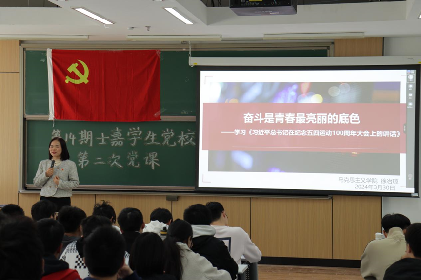 (通讯员 蒋言)3月30日下午,第14期士嘉学生党校第二次党课在沙河校区教4-201举行,马克思主义学院徐冶琼老师做题为《奋斗是青春最亮丽的底色——学习<习近平总书记在纪念五四运动100周年大会上的讲话>》专题党课,悟空影院