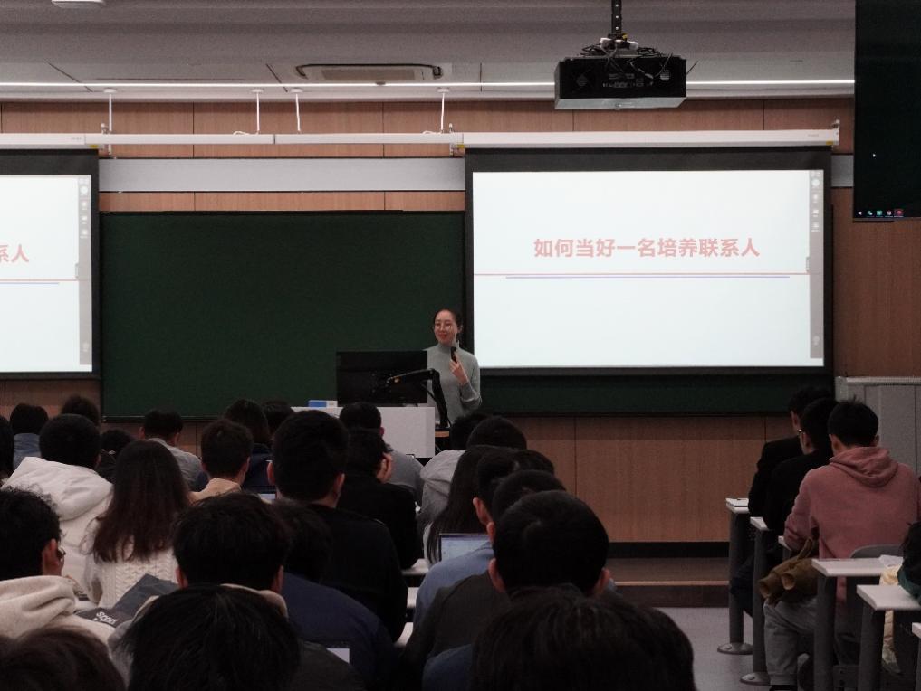 团委书记郑婷予介绍了“一站式”学生社区功能型党支部成立的背景、组织架构以及承担的工作,并就“如何当好一名入党联系人”提出几点建议,希望各位培养联系人可以切实履行自身职责,协助书院完成积极分子的培养,做好“红色梦拓”,成为入党积极分子的“领路人”和“养护人”。