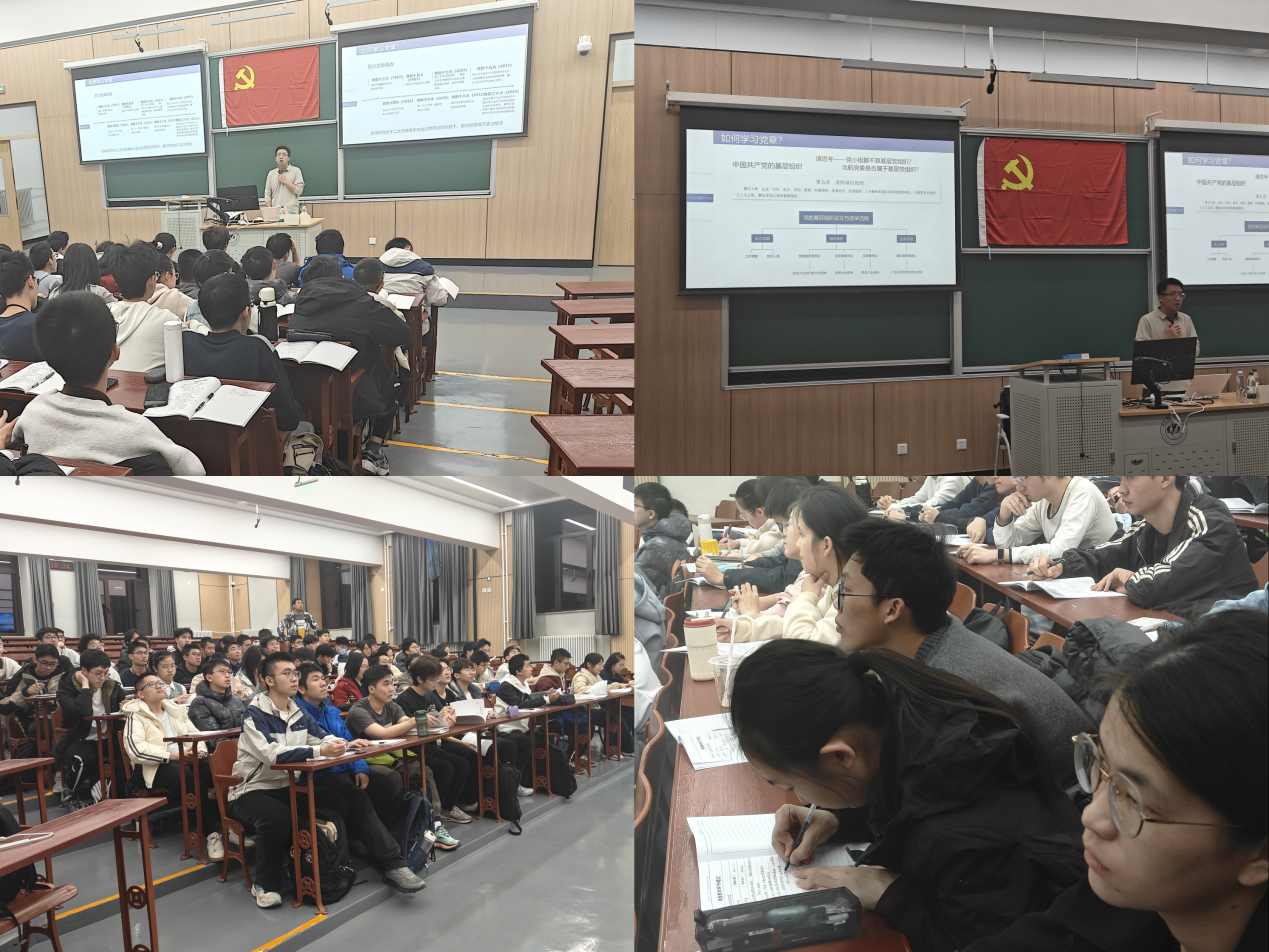 开班仪式结束后,马克思主义学院副教授刘佳老师作题为《结合党史学党章》的首场党课。他从党章的学习方法和类型引入,指出学习党章应紧密结合党义、党情、党史这三个维度,进行系统深入的探究。随后,刘佳老师带领学员们回溯历史,详细介绍了中国共产党章程的具体内容、诞生背景以及一路以来的发展历程。他向学员们强调要树立正确的党史观。在实现中华民族的伟大复兴中,坚持实事求是,旗帜鲜明地反对虚无主义。最后,刘佳老师聚焦新时代伟大变革与历史性成就,强调要在这一时代背景下深化对党章的学习,学会从政治高度思考问题、开展工作,不断提升政治判断力、政治领悟力、政治执行力。鼓励他们在未来的学习与生活中,以实际行动践行对党的忠诚,向着成为合格党员的目标坚定迈进。
