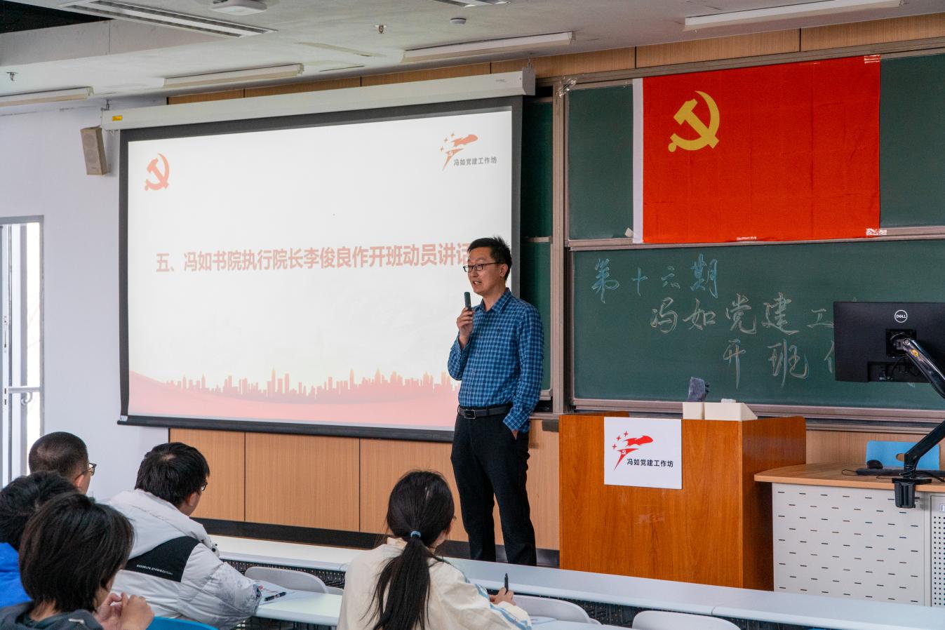 执行院长李俊良作开班动员讲话。他强调,各位学员要切实提高政治意识,加强党性锤炼,坚定理想信念,矢志不渝地向党组织靠拢,并嘱托全体学员,在党建工作坊中不仅要加强理论学习,夯实向党靠拢的思想基础,而且要投身社会实践,以实际行动践行党的宗旨,真正做到学思用贯通、知信行统一。