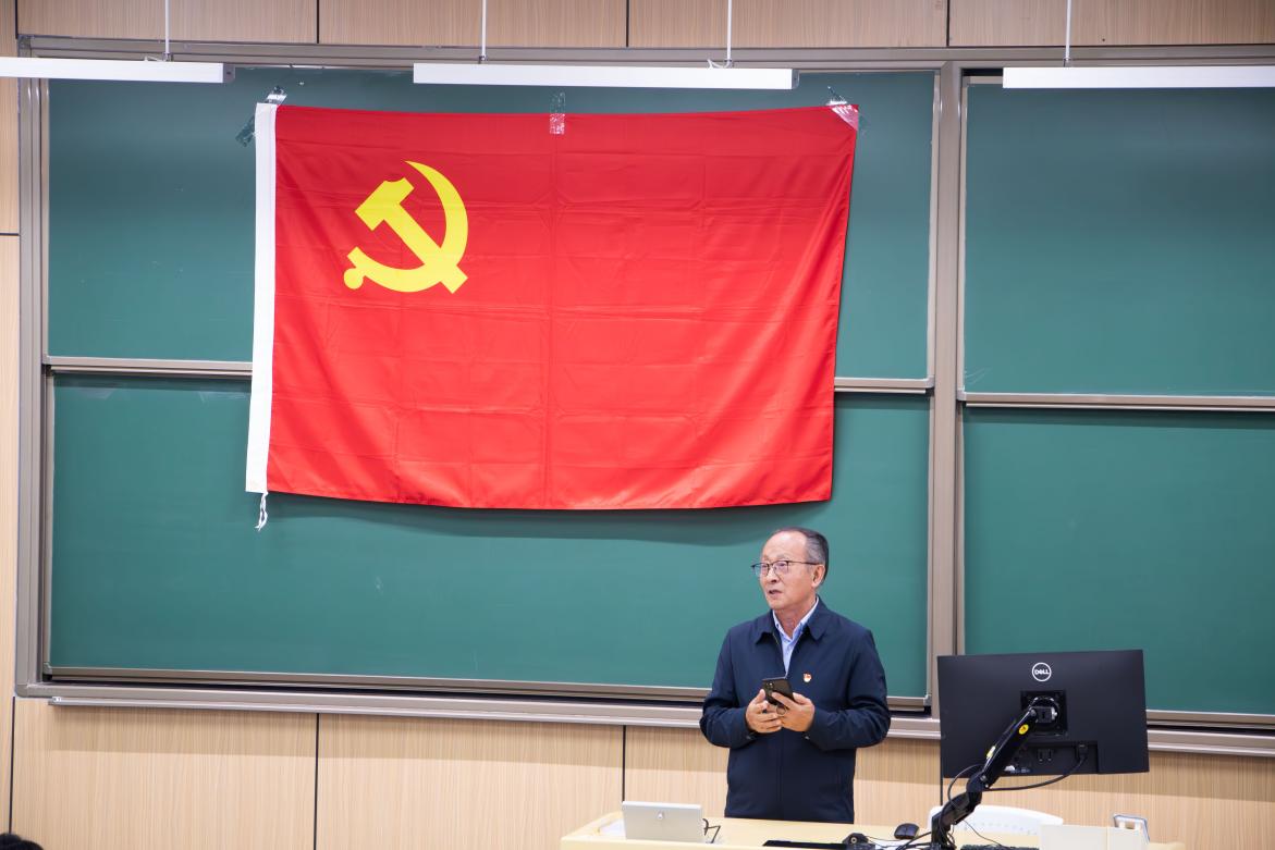 在开班仪式后,原自动化科学与电气工程学院党委书记、离退休教职工党委委员马军老师以《从开国大典到九三阅兵》为题,为全体学员讲授了第一堂党课。马军老师以《共产党宣言》为引,讲述陈望道“蘸着墨汁吃粽子”的故事,强调学习真理不仅要知其言,更要悟其意。随后,他回顾了从开国大典时中国军队的艰难起步,到九三阅兵的恢宏场景,阐释了中国国防科技实现跨越式发展的奋斗历程。最后,他以毛泽东的名言作结——“世界是你们的,也是我们的,但终归是你们的”,鼓励学员胸怀天下,勇担使命,在新时代的征程上书写青春篇章。