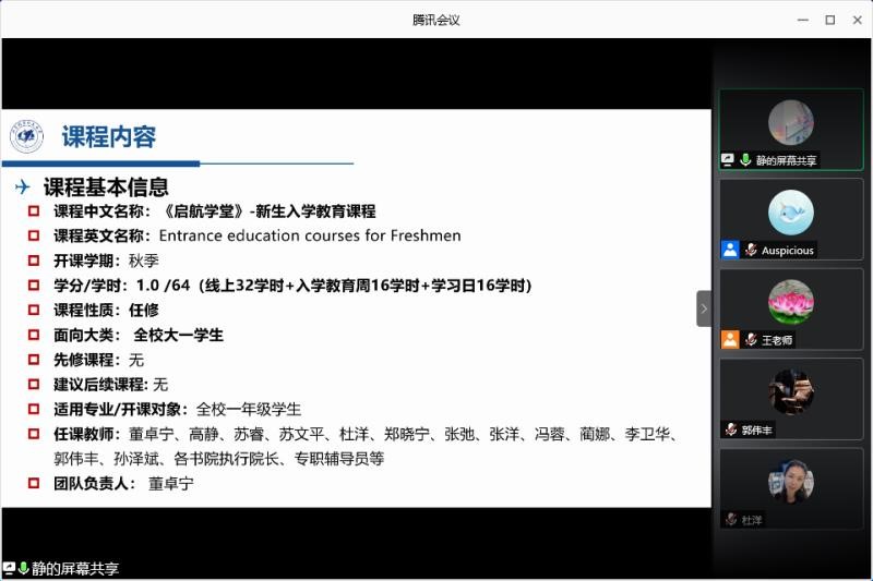 采用腾讯会议平台召开《启航学堂》新生入学教育课程教学大纲评审会议,悟空影院
