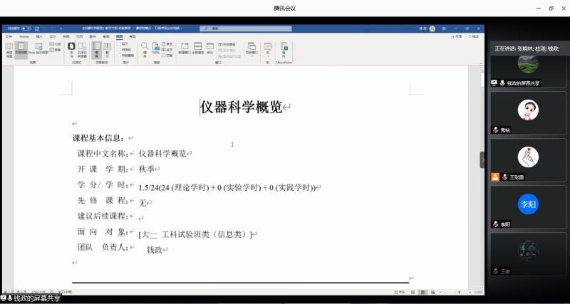 采用腾讯会议平台召开信息大类新增课程《仪器科学概览》教学大纲评审会议,悟空影院