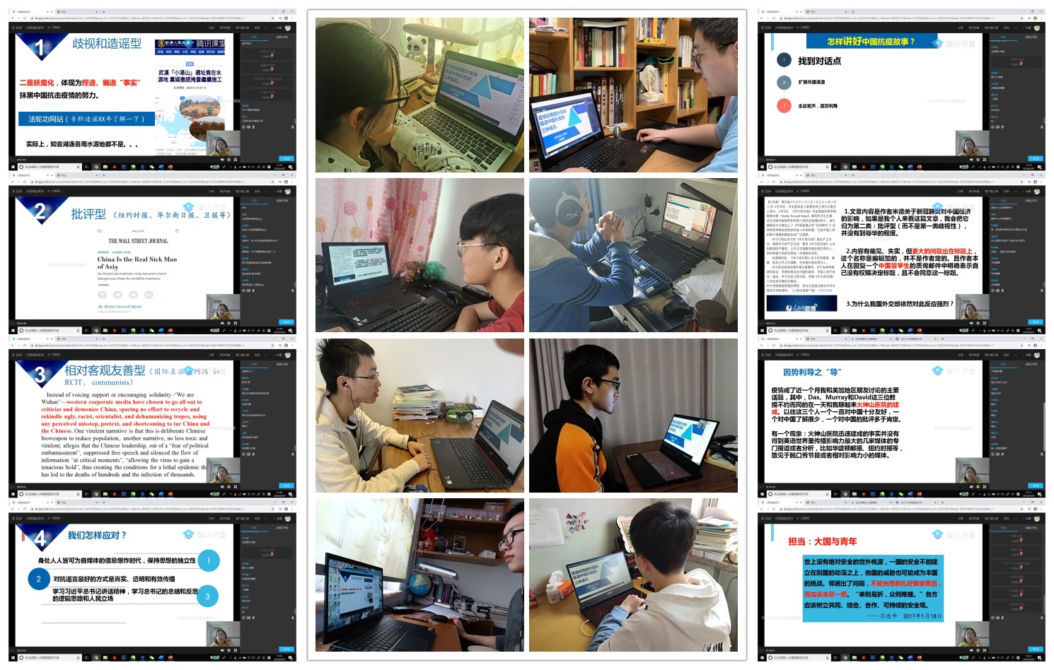于4月29日下午开展了《疫情初期国外媒体报道中国的三种面孔》主题讲座。来自马克思主义学院的刘娜娜老师为同学们全方位地介绍了疫情初期国外媒体对中国抗击新冠肺炎的三种态度,并深入分析伴随疫情而来的复杂的斗争形式,增强了同学们对中国特色社会主义道路、理论、制度、文化的思想认同、情感认同和理论认同。