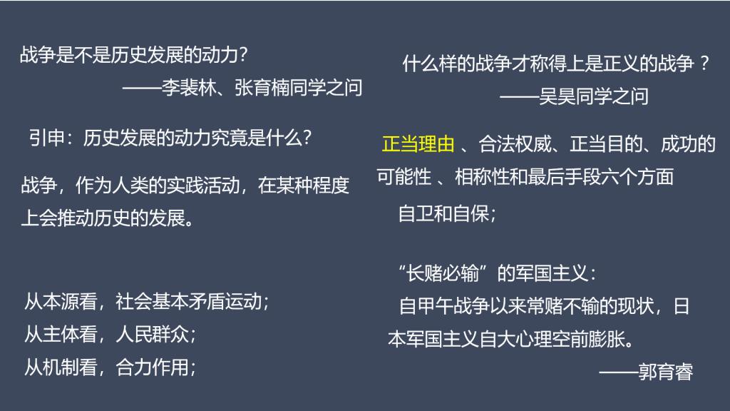 伍梓楠对李文爽老师的评语——“李老师的课,不仅仅是简单的演义和空泛的陈词,而是有事件的,然而事件又不是事件,是人物,细看之下,人物也不再是人物,而是思想,是意识形态,最终人与事汇聚成历史发展的必然规律,向今日之中国与世界奔涌而来。”