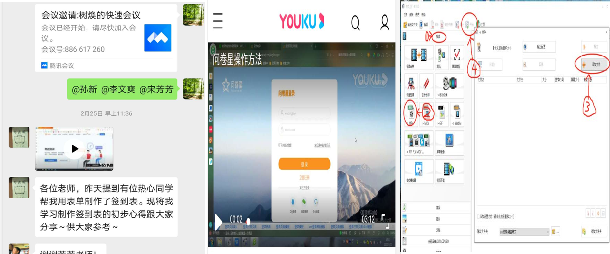 安排的教学培训外,自觉寻找和利用各种软件作为教辅工具。如吴东姣老师开发问卷星作为日常测试工具,孙新老师开发格式工厂软件的使用方法,宋芳芳老师引入金数据签到软件等,规范了教学流程,增强了教学仪式,保证了教学参与,提升了管理效果。