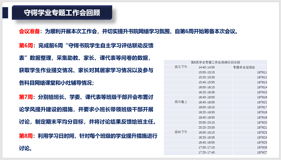 (通讯员 纪奕欣)2020年4月19日下午,守锷书院以线上会议的形式召开了2020年春季学期学业专题工作总结会,会议由守锷书院学业总导师王少萍主持;守锷书院全体班主任、工作人员参与了此次会议。