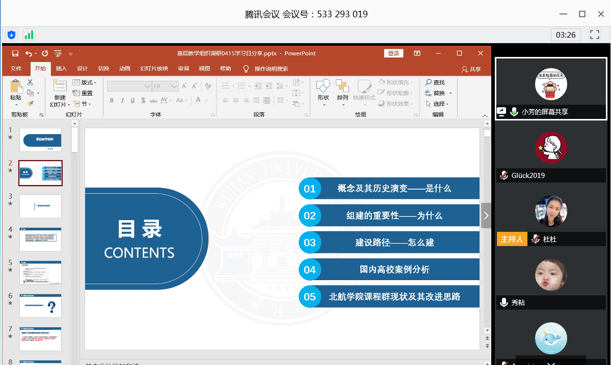 报告结束后,教学工作部全体人员就上述内容展开了讨论,加深了对基层教学组织建设内容的理解,并对悟空影院