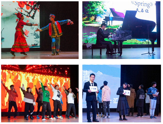 才华横溢的士嘉学子为现场观众呈现了一场视听盛宴。歌曲《太阳》、《平凡之路》等深情款款、温暖人心,舞蹈《fancy》轻快活泼、唯美动人,铿锵有力的表达了士嘉学子的蓬勃昂扬的青春活力。宛转悠扬的小提琴独奏、幽默诙谐的《猫的协奏曲》创意钢琴表演,葫芦丝社精心准备的经典民歌《彩云之南》,展现了士嘉学子的多才多艺。来源于生活的小品《请假奇遇》使人忍俊不禁,“听歌识曲”“你画我猜”等紧张刺激的游戏环节带来了一片欢声笑语。