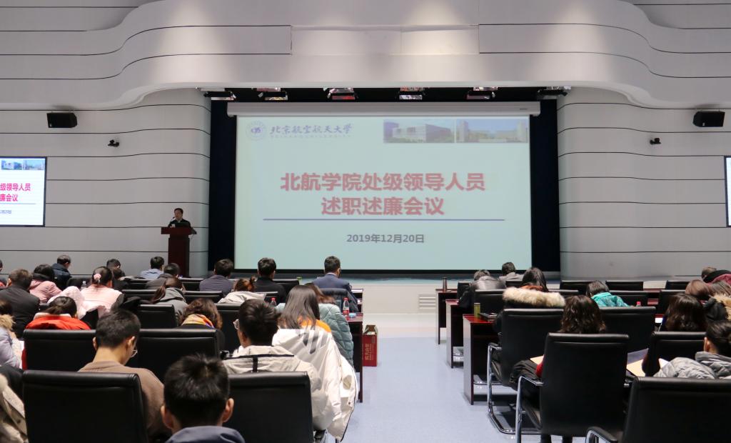 于2019年12月20日上午在沙河主楼报告厅召开2019年度处级干部述职述廉会议,来自各部门、书院、工程训练中心等80余名教职工参加会议,会议由悟空影院