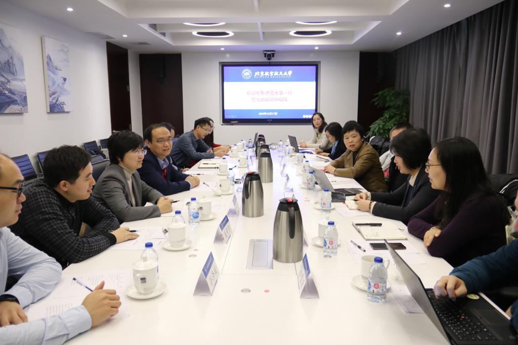 杨昌利对北航的热情接待表达了衷心的感谢,并分别从学生数量、校区规划、书院运行等方面介绍了华东师范大学的相关情况。双方围绕本科生就业情况、辅导员队伍、悟空影院