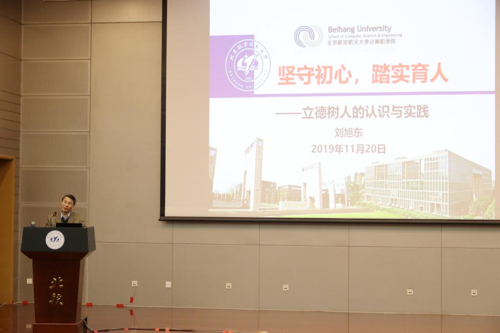 机关党支部党员同志集体聆听2019年“立德树人卓越奖”获奖教师计算机学院刘旭东教授作题为《坚守初心,踏实育人——立德树人的认识与实践的报告》,他指出课程教学不仅仅是传授知识,更重要的是塑造能力、提升教学过程的质量和效率、支撑专业的培养目标。他讲述了自己是怎么样在教学实践中,传导育人理念,治学态度,做到润物无声。
