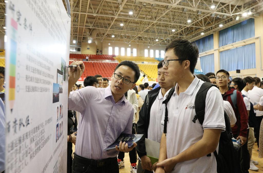 专业学院的展位前,同学们纷纷向老师提问“这个专业的优势是什么?”“有哪些特色的专业课?”“专业未来的发展方向是什么?”等问题,而老师们则结合专业科技前沿、科技实物展品和生活实例等对同学们的问题进行生动形象的说明。