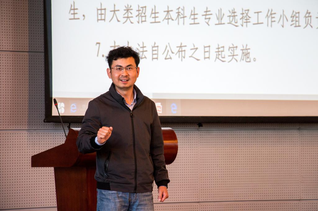 首先,闵院长解读了《关于2018级大类招生本科生专业选择办法问答》。闵院长指出,本次专业分流将严格贯彻“公平、公正、公开”的基本原则,严格遵守“志愿优先、成绩排序、计划控制”的基本规则,依照“名单确定、志愿调查、专业目录及计划指标确定、系统试用、成绩确定、成绩排序、志愿填报、专业确定、异议申诉、结果公布”的基本流程,实行“普通特殊双类平行”的分流模式,充分尊重学生志愿,全力保障此次专业分流顺利成功进行。