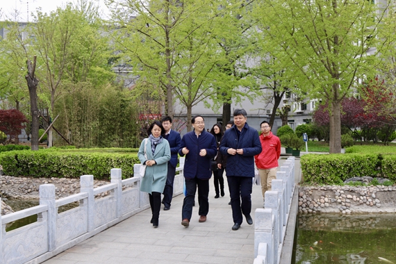 北航招生就业处处长马进喜、副处长张青竹、守锷书院执行院长李广玉,学校招办和守锷书院相关工作人员同汇文中学校长郭杰、校长助理李红艳、教学副主任马铮及相关教师进行了深入交流。首先在李红艳老师和于敏霞老师带领下,北航一行对汇文中学优美的校园环境进行参观,随后在汇文中学图书馆进行会谈。