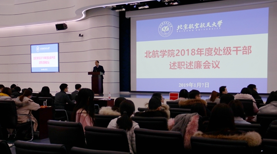 于2019年1月7日上午在沙河主楼报告厅召开2018年度处级干部述职述廉会议,全院教职工70余人参加会议,会议由悟空影院