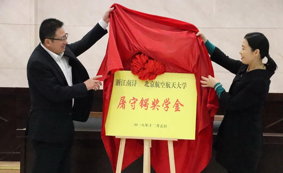 校友联络发展处王有洪处长和钱红梅副区长共同为“屠守锷奖学金”揭幕,与南浔镇政府交换签署捐赠协议,为捐赠企业代表颁发了捐赠证书。王有洪处长感谢南浔镇政府及辖区企业捐赠设立奖学金,并希望永恒的守锷精神能将南浔和北航联系在一起,双方进一步加强交流,促进合作,加大投入,将屠守锷精神发扬光大。