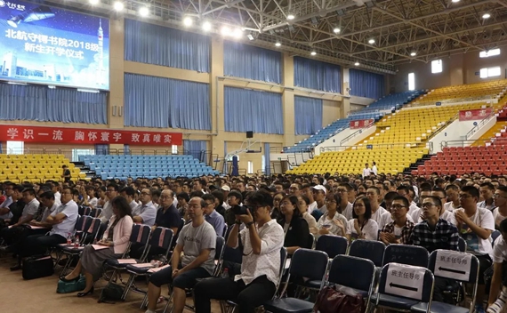 常务副院长曹庆华教授、守锷书院院长张德远教授、学业总导师王少萍教授、执行院长李广玉老师、守锷书院2018级导师、辅导员、助理、全体2018级新生近600人参加。
