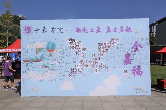 本次迎新工作采用了“人脸识别”系统,极大的提高了工作效率,每一名新生都顺利完成了报到流程,还领到了书院为他们准备的纪念品。迎新工作团队还为新生设计了特色活动,每一名新生报到后会在特色背景墙上拍照留念,照片冲洗出来后贴在签名板上组成飞机图样。