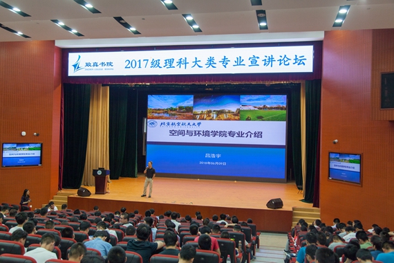 2017级理科大类宣讲论坛在咏曼剧场举行。论坛邀请到包括经济管理学院、数学与系统科学学院、物理科学与核能工程学院、化学学院、空间与环境学院及网络空间安全学院在内的六所专业学院领导代表,为大家进行各学院具体情况讲解介绍。会议由悟空影院