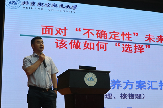 下发的《关于2017级大类招生本科生专业选择办法问答》文件进行了全面解答,并一再要求所有同学务必及时关注信息北航。稍后,专职辅导员贾子超进行了考期动员,强调了诚信考试的重要性,指出大家一定要避免一切违纪行为。专职辅导员魏茜也在会上作了发言。她向大家传达了书院多元化、全方位的学业辅导计划,包括备考指导讲座、考前串讲,以及“学业伙伴计划”,鼓励大家在积极备考的同时,也要充分利用书院提供的优质学业辅导资源。