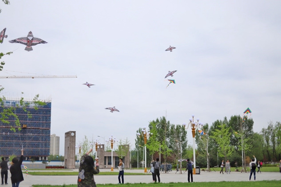恰逢人间四月天,春暖花开,纸鸢斗艳。风筝放飞区更是人来人往,热闹非凡。宽阔的大钟广场上空放飞了各式各样的风筝,将天空点缀的鲜亮。中外学生一同放飞风筝,在尽情体验中国优秀传统文化的同时促进交流,增进友谊。活动期间还有周围居民的驻足观赏和参与。