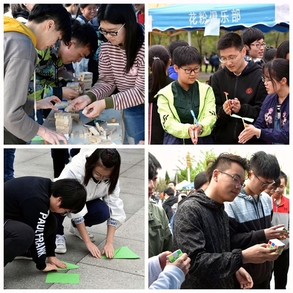 在休闲游戏区,各个摊位前排起了长龙,同学们其中穿梭,积极参与。他们在数独游戏中开动大脑活跃数理思维,在竹蜻蜓的旋转中体会空天文化与飞翔的乐趣,在用水彩定制的书画纸扇中感悟中华文化的博大精深。每个人都乐在其中。