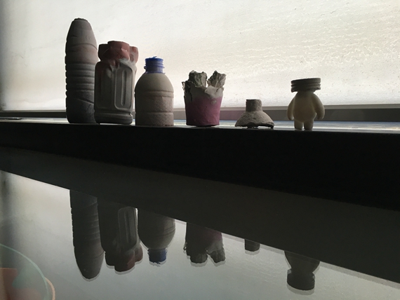 第二节课上,高老师指导同学们拆开了模具,卸下层层包裹,展现了作品的本貌。高老师将作品分为每四个一组,让同学们充分发挥想象,对作品自由评价。有一位同学的作品是红色的混凝土石杯,高老师饶有兴趣地询问同学们有关这个作品有什么想法,有一位同学拿来了一株树枝插入了石杯的孔中,宛若红色的岩浆上长出了一抹新绿,充满了生命感。还有为大白戴上了混凝土面具的同学,做了混凝土小贝壳的同学,大家纷纷展示了自己作品的创意,高老师认真地予以点评和指导。在讨论的过程中,诸如“被蒙在鼓里的大白”,“蒙牛同学”等金句频频出现,现场欢笑不断。最后,同学们表达了自己经过两周的设计想法,在老师的指导下逐渐付诸实践。课程的最后,同学们依依不舍,希望能够再次用自己的双手创作出那一份带有独特禅意的作品。