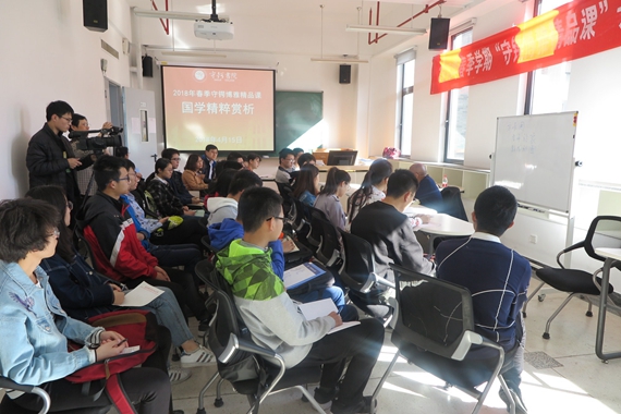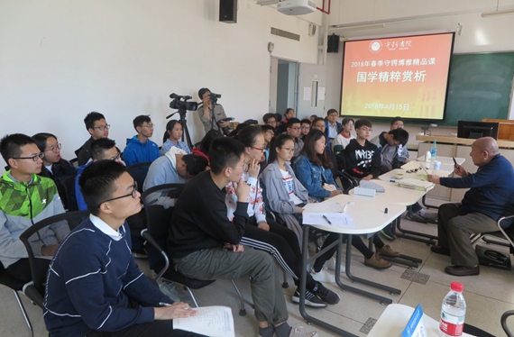 (通讯员 段诗洋 蒋茁)4月15日上午,阳光和煦,守锷博雅精品课《国学精粹选析》第一讲在教3-203顺利进行。国学大师方承国教授带来了一次妙趣横生的传统文化之旅,为同学们打开了传统文化之门。