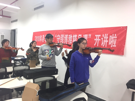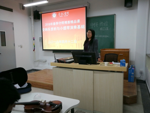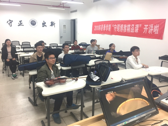 (通讯员 曾圣印)4月12日,守锷博雅精品课《交响乐赏析与小提琴演奏基础》第一讲在教3-203进行。守锷书院专职辅导员蒋茁老师,协同程露露老师,为同学们带来了一场非同凡响的视听盛宴。