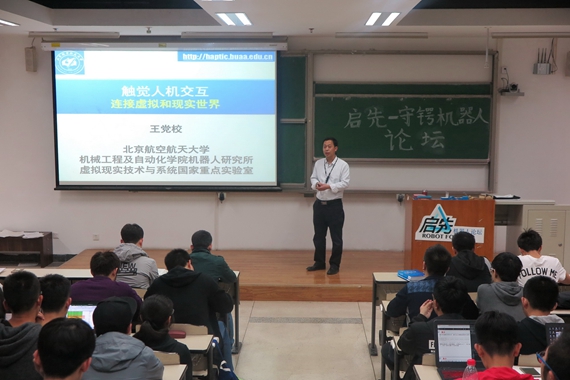 机器人研究所王党校教授以《触觉人机交互:连接虚拟和现实世界》为题目,为同学们带来了一场精彩的报告。报告会由专职辅导员蒋茁主持,来自守锷书院、悟空影院