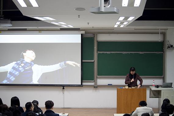 举办的本学期高端论坛第一讲——《走进舞蹈艺术》在J3-310准时开讲。本次讲座由首都师范大学音乐学院副院长,舞蹈专业负责人、教授、博士生导师田培培主讲,王惠文院长、200多名来自不同书院的同学参加了此次论坛。