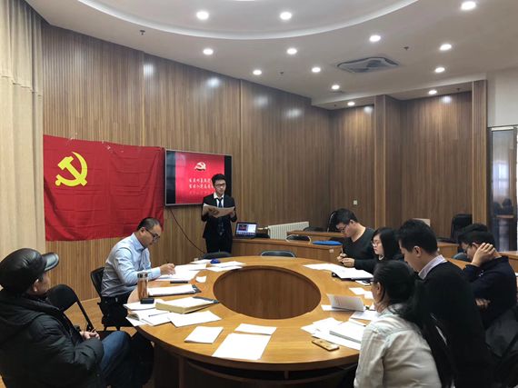 大会开始之前,党支部全体党员一同开展了微党课学习环节,由支部书记孙泽斌同志主讲。孙泽斌同志围绕大会主题、大会主线条、报告结构三个方面介绍了自己学习十九大精神的心得体会,并分享了自己参加北京市第6期哲学社会科学班学习时的所见所感。