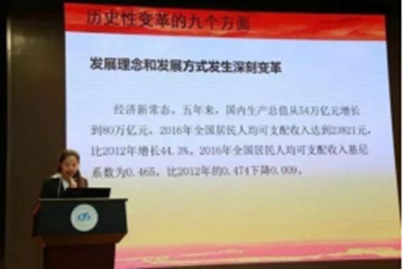 于秋漫讲师从“十九大及十九大报告概述”、“十八大以来党和国家事业发生的历史性变革”、“中国特色社会主义进入新时代”、“社会主义矛盾的变化”四个方面,详细阐明了“新时代开启新征程”的宣讲主题。