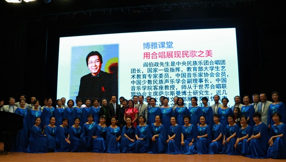 沙河校区咏曼剧场顺利举行。本期博雅课堂邀请到了中央民族乐团团长、首席指挥阎伯政教授以及他所带领的北航教工合唱团和多彩中国文化交流艺术团合唱团,由陈志英教授主持。