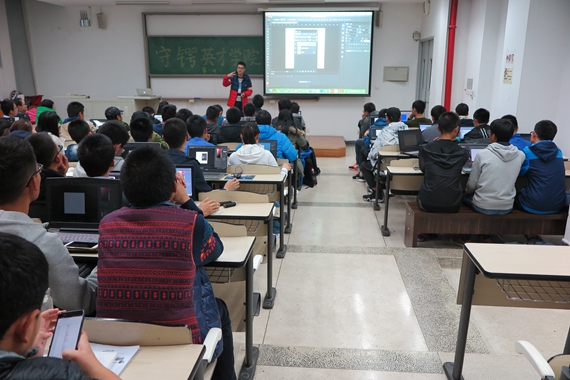 (通讯员 赵伟泽)11月3日晚,三号教学楼103房间内座无虚席,同学们早早地教室,带着自己的电脑与一颗满怀期待的心等待着守锷英才学院的第一堂课。