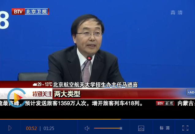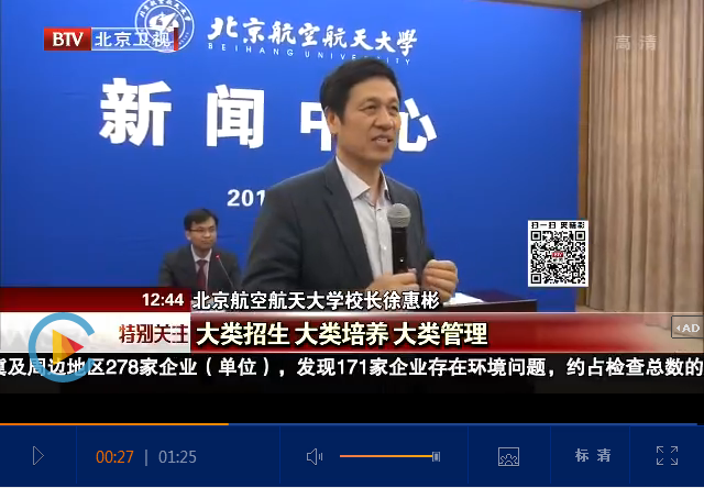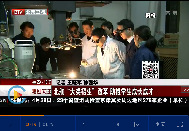 BTV《特别关注》2017年4月30日北京电视台记者王晓军、孙强华报道北航“大类招生”改革,助推学生成长成才: