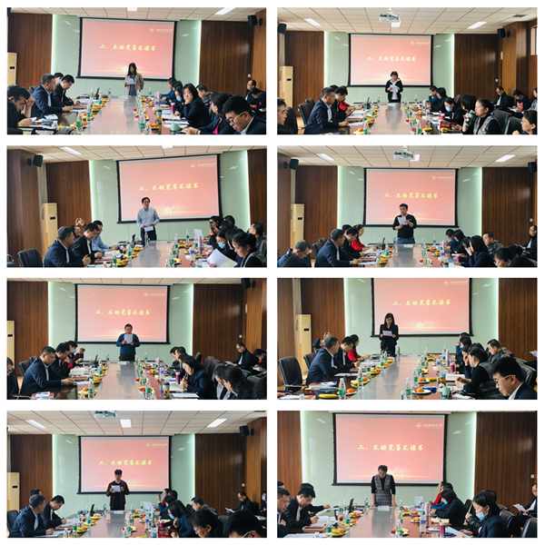 “不动笔墨不读书”环节中共有17位教师现场分享了阅读《中国共产党简史》、《苦难辉煌》、《浴血荣光》等党史和红色文学书籍的读书笔记。据统计,全院共有34名教职工撰写了读书笔记。书中的文字随着大家的解读与感悟得到了新的升华,其中工程训练中心孙英蛟老师说:“《苦难辉煌》这本书给我最深的感悟是‘苦难是他们(革命先烈们)的,辉煌是我们的’,正是他们经历了述不尽的苦难,才铸就了今天的辉煌,我们应向前人致敬,吾辈当继续创造辉煌”。