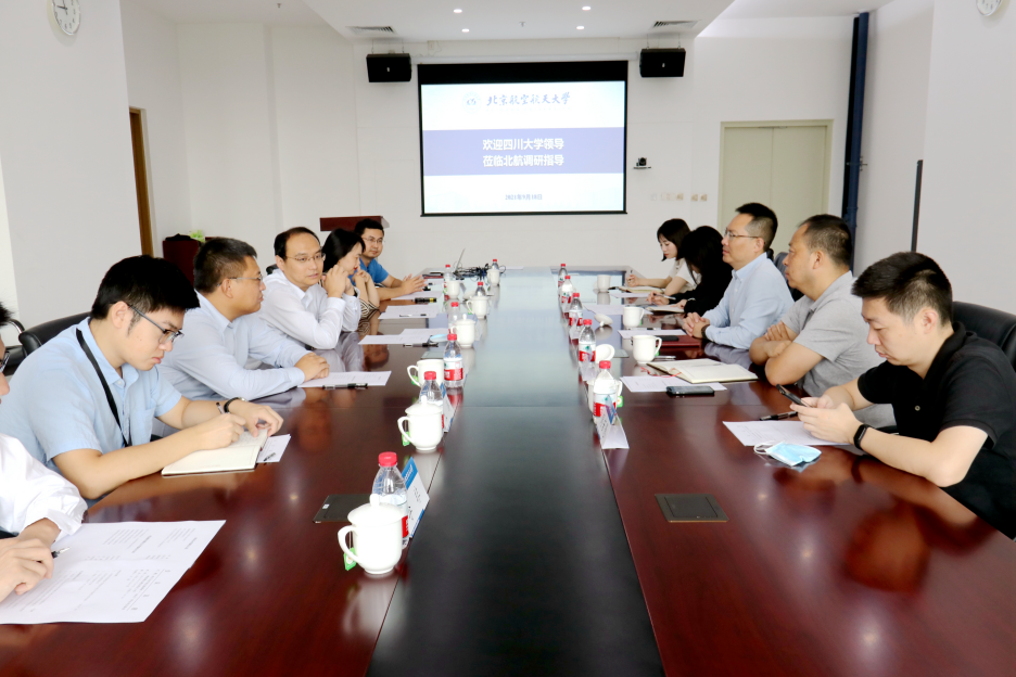 陈森对北航的热情接待表达了衷心的感谢,并从学生数量、人才培养特色等方面介绍了四川大学相关情况。双方围绕思政教育、党团设置、导师制建设、专业选择、协同育人机制、学生住宿情况、后勤保障等方面展开了交流。双方认为此次交流收获颇多,希望后续能更进一步的互动交流合作。