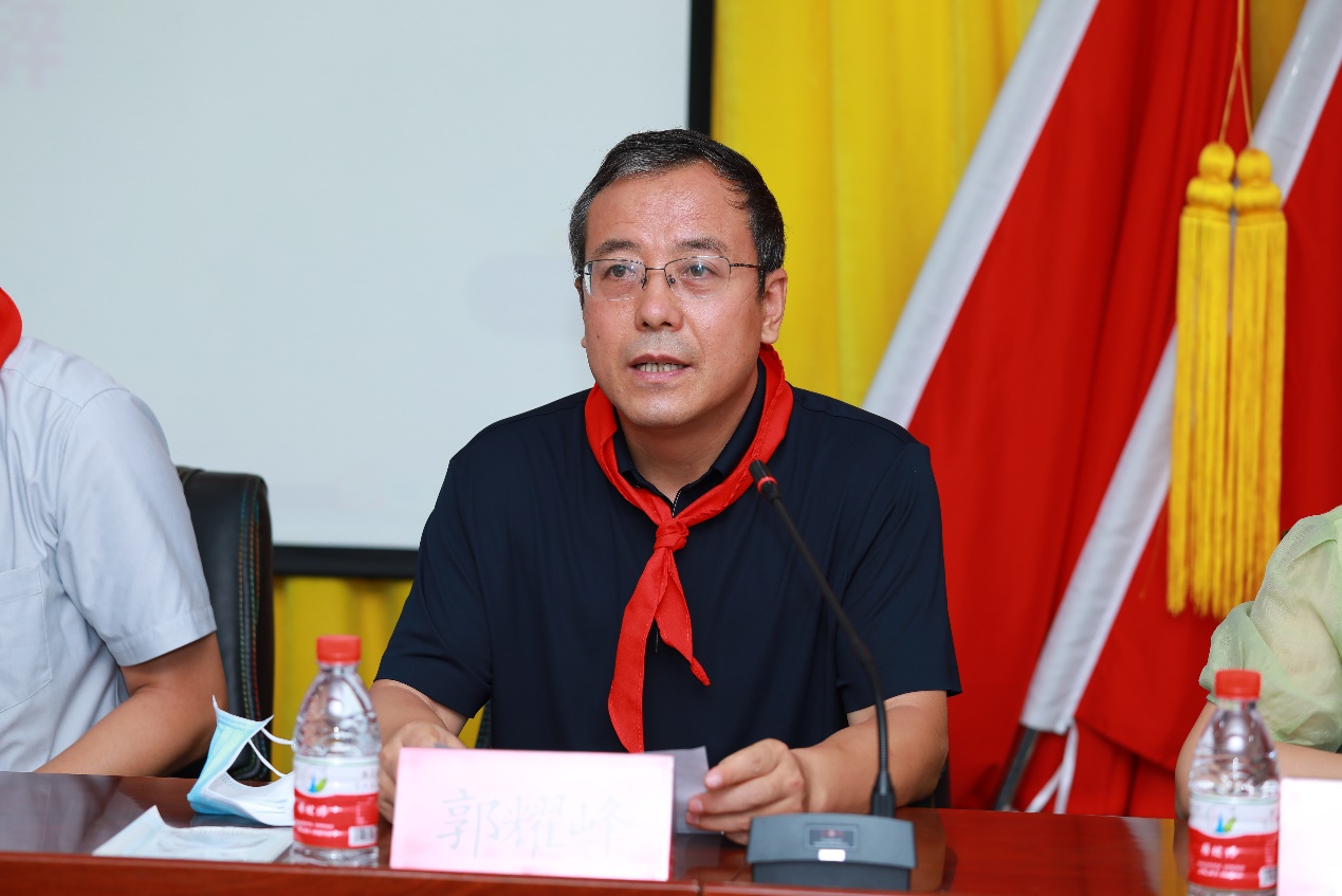 阳坡塔学校校长郭耀峰致辞。他对北航全体老师与志愿者对本次科创训练营的付出表示感谢,希望参营学生把握机会,努力学习,精诚合作,开拓思维,全面提高科创能力,在科创训练营中有所收获。