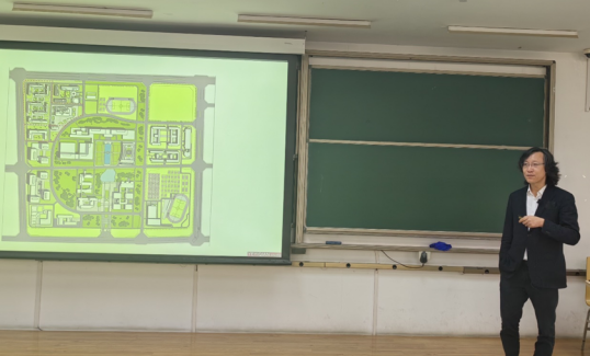 总务部、资产与实验室管理处20余位老师和来自各个专业学院的200余名学生在沙河校区教3-105共同聆听沙河校区校园背后的建筑故事。