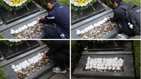 到达陵园后,同学们分立两列,肃穆站立于屠老墓前。主持人谢晟宣布悼念活动开始。首先是学生代表许家铜为大家讲述屠老的生平事迹。许家铜同学从屠老波澜壮阔的一生讲起,回顾了屠老为国家做出的巨大贡献,又结合自己观看《百年守锷》话剧和参与星源流明实践队的经历,激励同学们学习屠老的高贵精神品质,传承守锷精神,奋发努力,空天报国。随后,同学们为屠老献上花篮,全体人员三鞠躬,为屠老集体默哀三分钟。